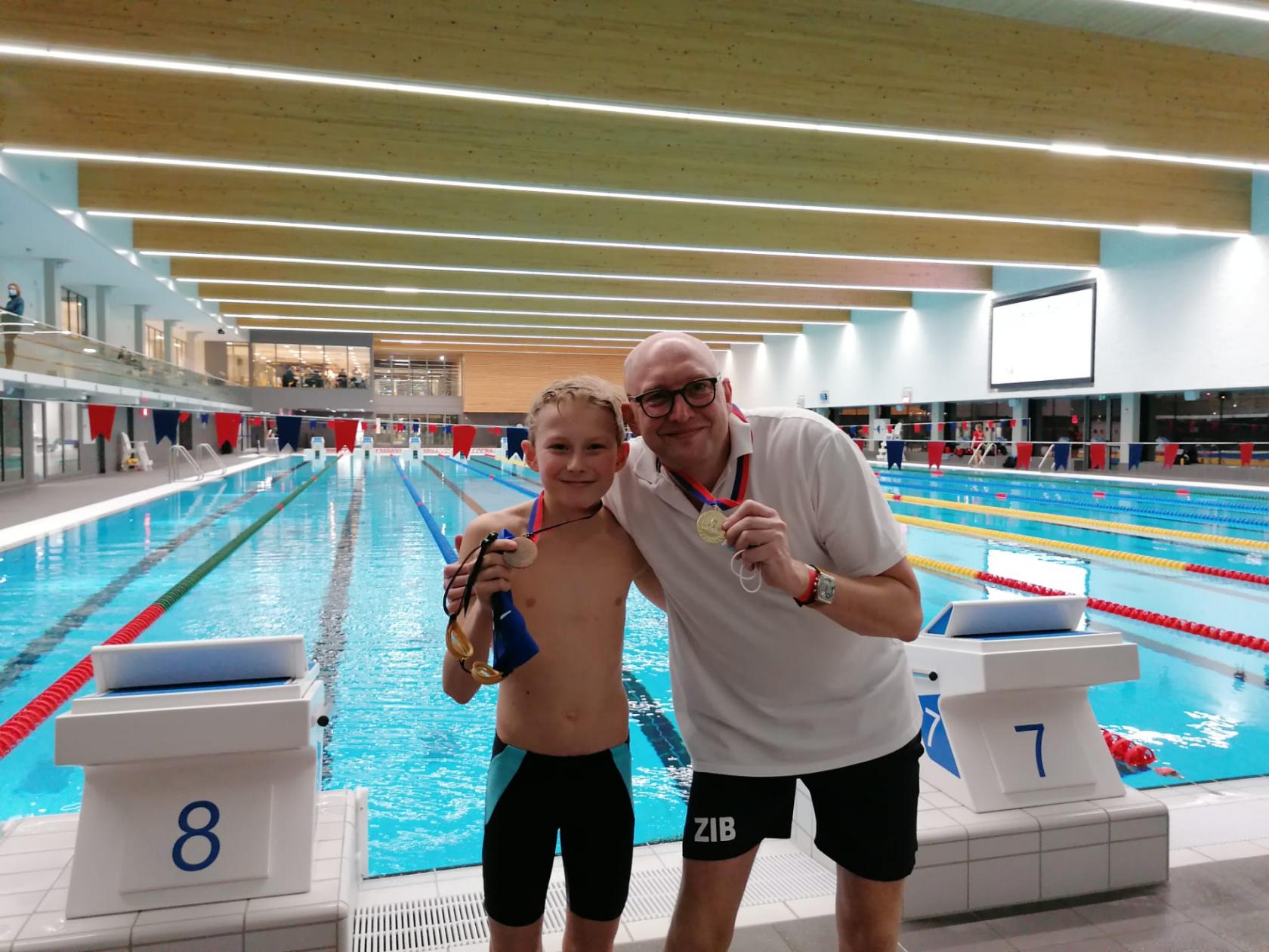 De familie Timmermans was met z’n drieën van de partij. Elias zwom een sterke wedstrijd bij de benjamins, maar werd jammer genoeg uitgesloten. Ook Matteo (23’41”39 – brons bij de miniemen) en papa David (23’54’’94 – goud veteranen U50) deden het uitstekend.