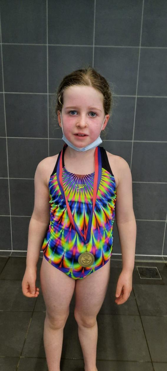 In de openingswedstrijd, de 200 m vrije slag voor eendjes, maakte de 7-jarige Fleur Loccufier haar debuut en hoe! Ze zwom de afstand in een erg mooie tijd van 4’52’ en won hiermee goud in haar categorie.